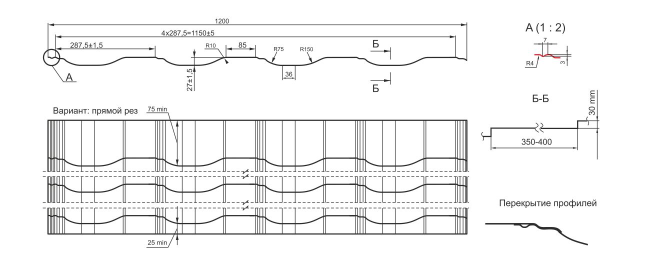• Ширина листа общая 1200 мм