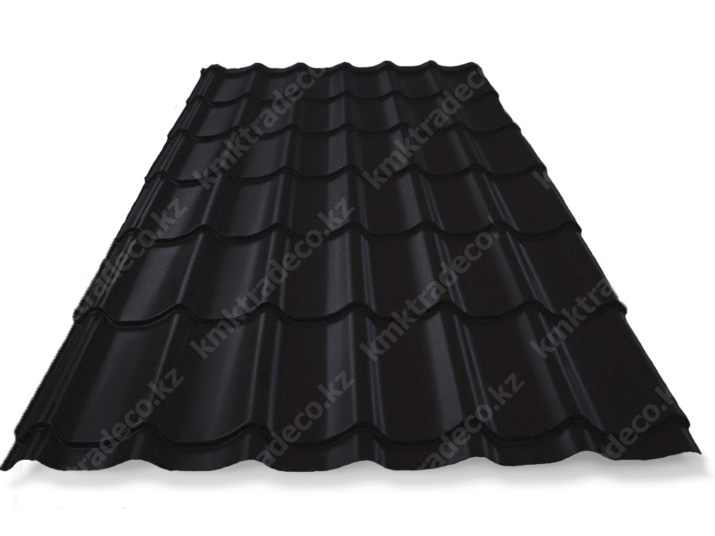 Металлическая кровля имеет максимальное сходство с натуральной черепицей. Листы изготовлены из тонколистовой стали толщиной 0.50 мм с МАТТ (матовым) покрытием премиум-класса – придаёт поверхности кровли необычный матовый «бархатистый» вид. Цвет – RAL 9005 Глубокий черный. Высота профиля – 25+/-1 мм.